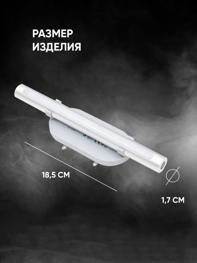 Модель излучает дневной белый свет, комфортный для глаз. Имеет функцию суперъяркого свечения в 165 Лм. Оснащена диммером и поворотным механизмом. Устройство легко крепится к поверхностям с помощью пьедестала на присосках. Работает от 2 аккумуляторов по 300 мАч, способно автономно функционировать в течение 2 часов. Заряжается через USB-кабель, который входит в комплект. К светильнику прилагается чехол для хранения.