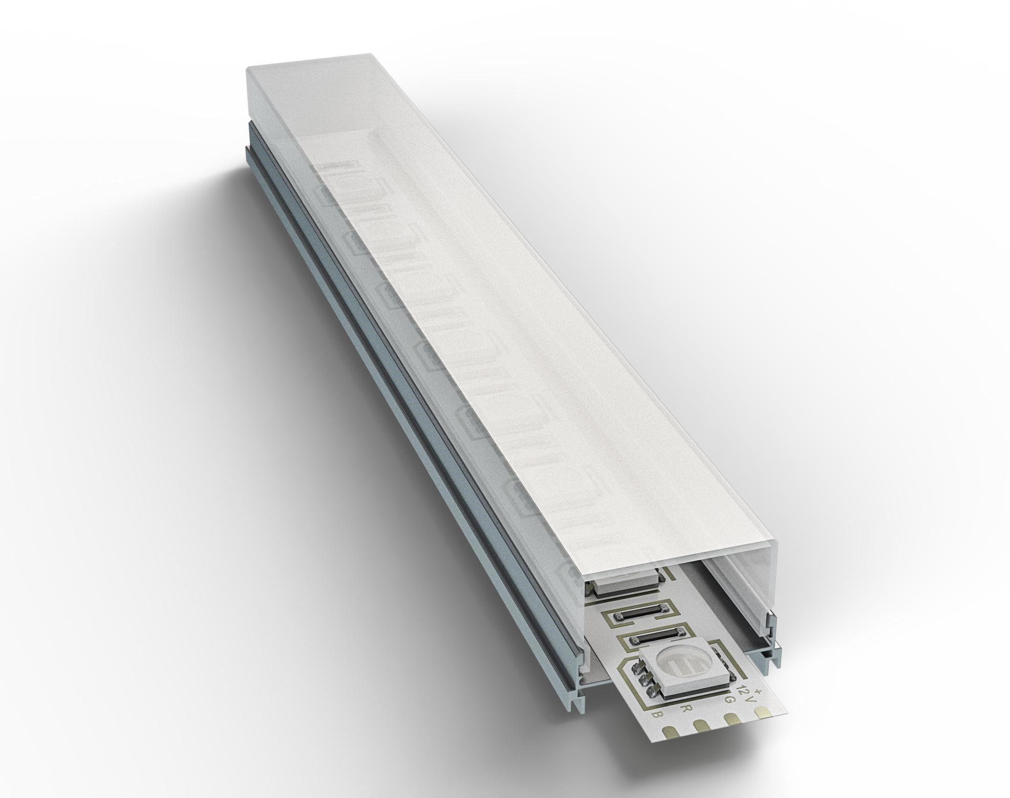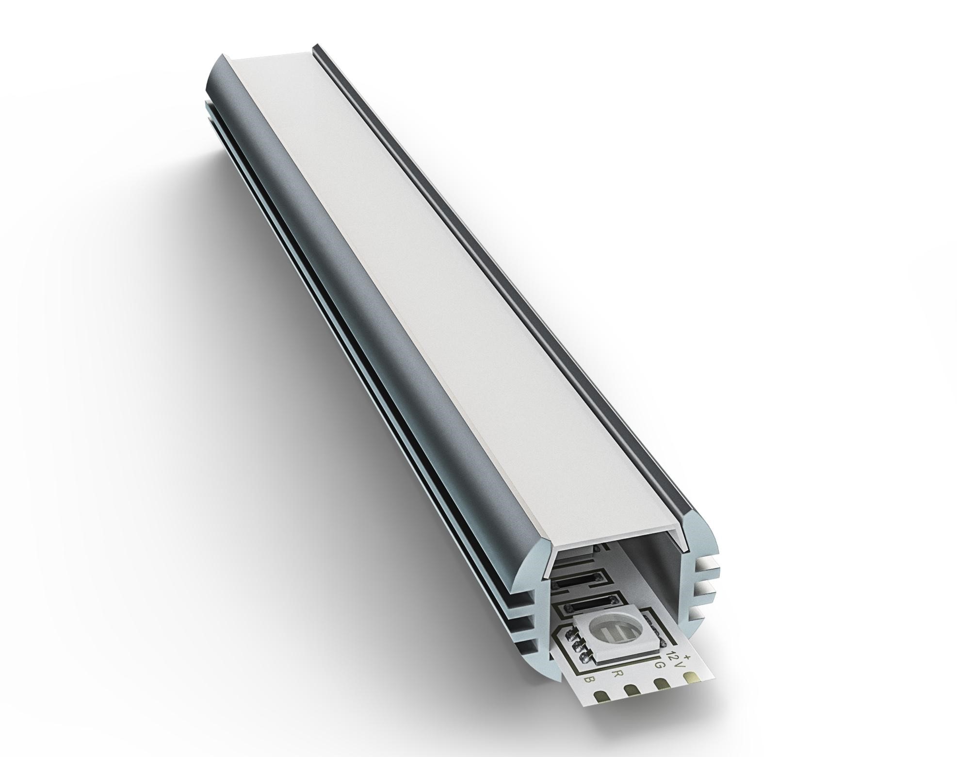 Чтобы смягчить яркий свет светодиодов и получить рассеянное, а не направленное освещение, с профилем применяют рассеиватель - прозрачный, матовый или полуматовый.