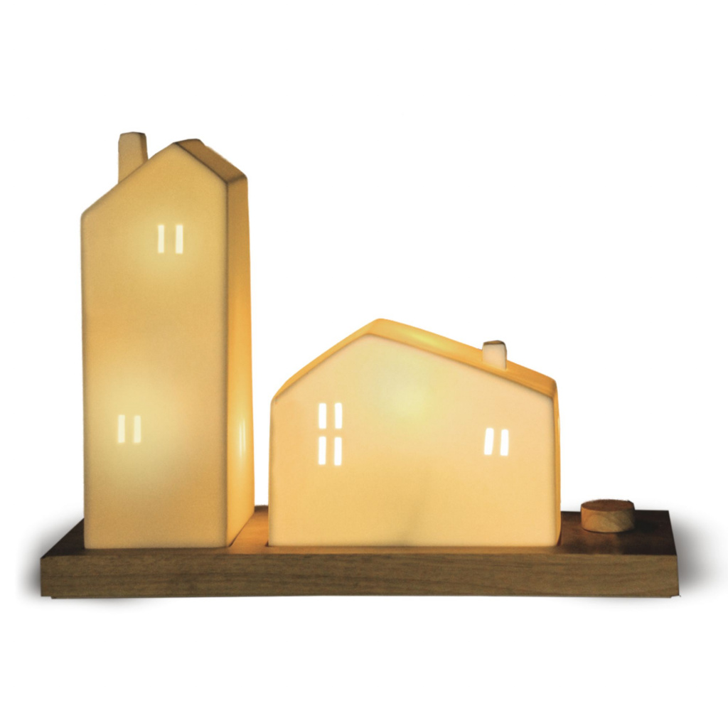 Важная особенность керамики – её непрозрачность. Материал не пропускает свет, поэтому из него получаются такие интересные ночники, как «Домики». Кажется, что в маленьких окошках кипит жизнь. Лучики света разливаются по комнате, создавая уютную атмосферу полумрака.